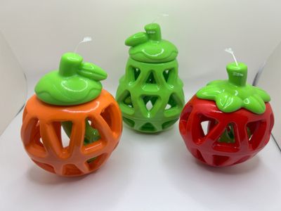 SENYe Fruity Bites Strawberry, Pear, and Orange Treat Dispensing Dog Toys.