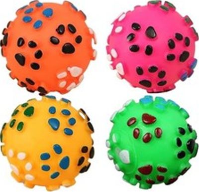 Paw Print Squeaky Dog Toy Balls, Pack of 4, Assorted Colors